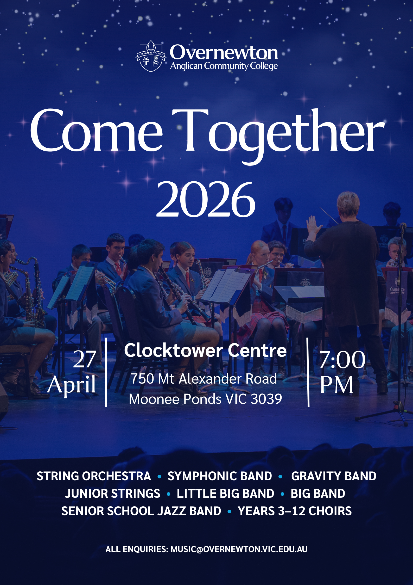 At this fantastic concert at the Clocktower Centre in Moonee Ponds many of our ensembles will provide a “taster” of their 2026 repertoire. There will be a snippet of the College musical, Oliver! and ensemble leaders will emcee to provide a foreshadowing of 2026 performances.