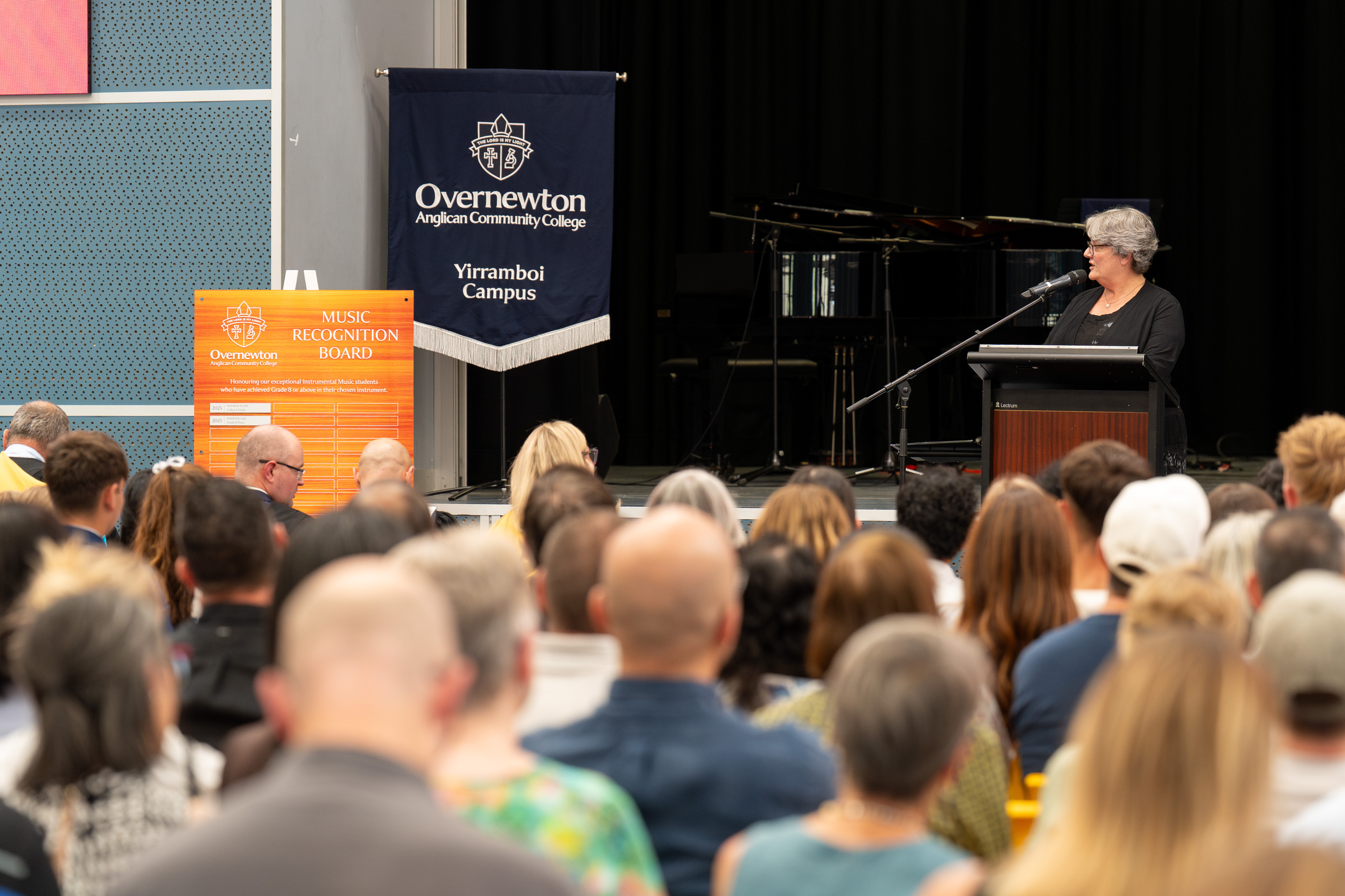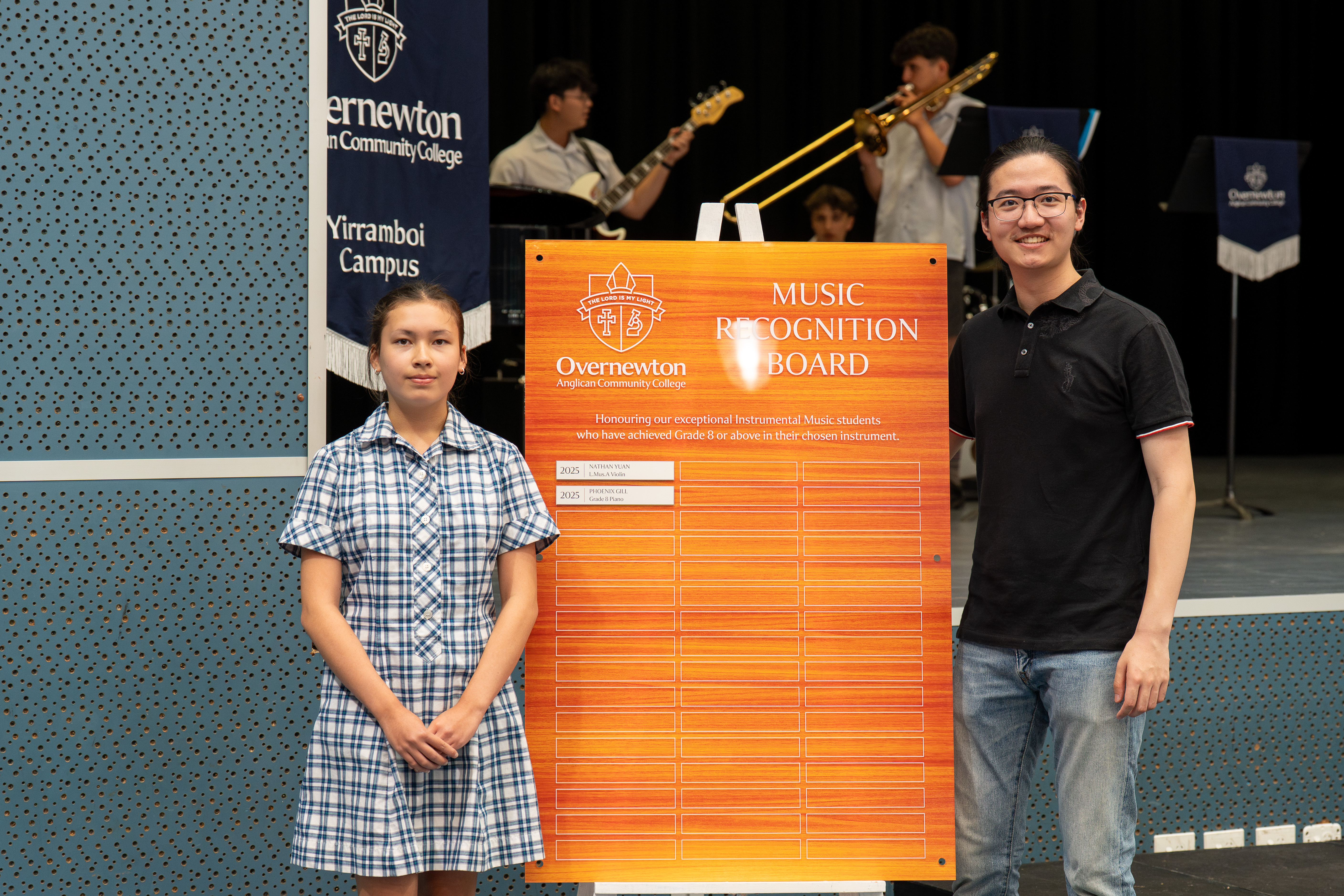 At our Class of 2025 Dux Awards Assembly, College Head of Performing Arts, Carolyn Hernandez, proudly unveiled the Overnewton Music Recognition Board, a lasting tribute to students who achieve Grade 8 or higher in their chosen instrument. This board represents more than achievement. It reflects perseverance, commitment and the pursuit of excellence.