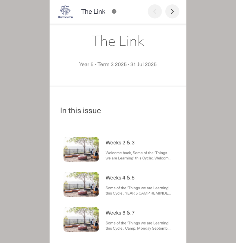 Communication with our families is an essential element to the success of our partnership. The College operates on a two-week timetable cycle, Week A and Week B. On the Friday before each cycle parents will receive a communication, titled The Link, via our Compass Parent Portal. This fortnightly update outlines the key activities and upcoming learning themes, to inform parents of the curriculum being taught over the cycle along with providing ideas for taking part in optional further learning at home.